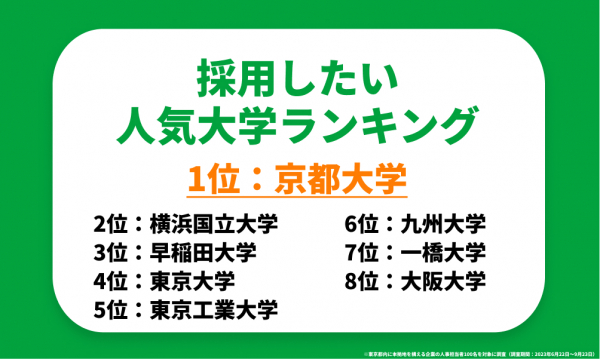 ランキングで1位となった京都大学は、とがった強みを持ち、学業や研究でその強みを発揮している人が多いことや、創造性や独自性が高いことを評価しているようです。特に都市部の研究職で高い評価を得ています。