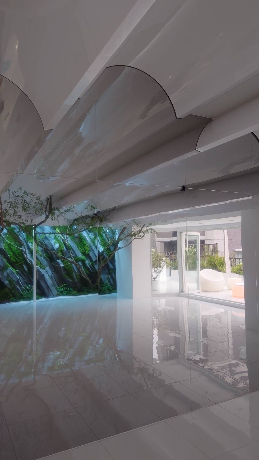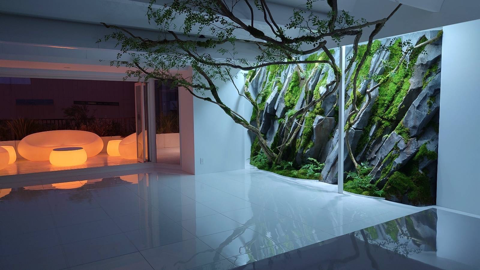 客室内に植物をふんだんに融合させた空間デザインで、壁面に当たる照明は、朝日、日中、夕方、月光など、時間によって様々な雰囲気を演出します。