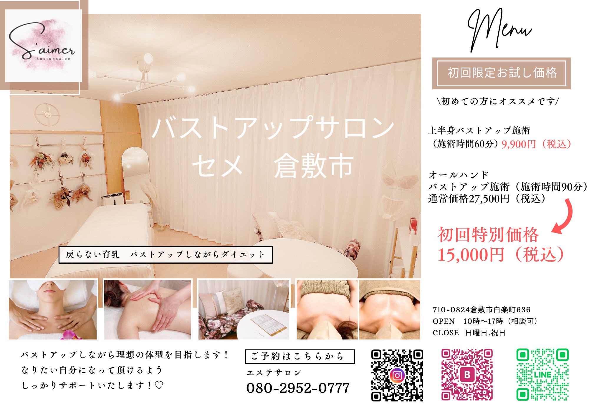 バストアップサロン セメ 倉敷市(岡山県倉敷市白楽町636)は、2024年6月10日より初回限定お試しメニューの提供を開始いたしました。