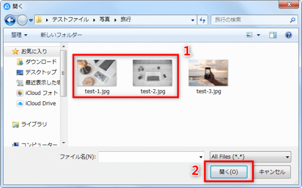 Step 2. iPhoneへ転送したい写真を選択してチェックした後、「開く」ボタンを押します。