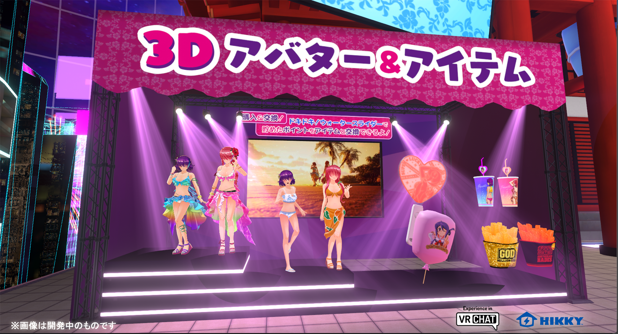 パラリアルドバイの壮大な街並みに、「沖ドキ!」シリーズのコンセプトブースが出現! Vket史上最大規模のウォータースライダーときらびやかなナイトプールで皆様をお待ちしております。