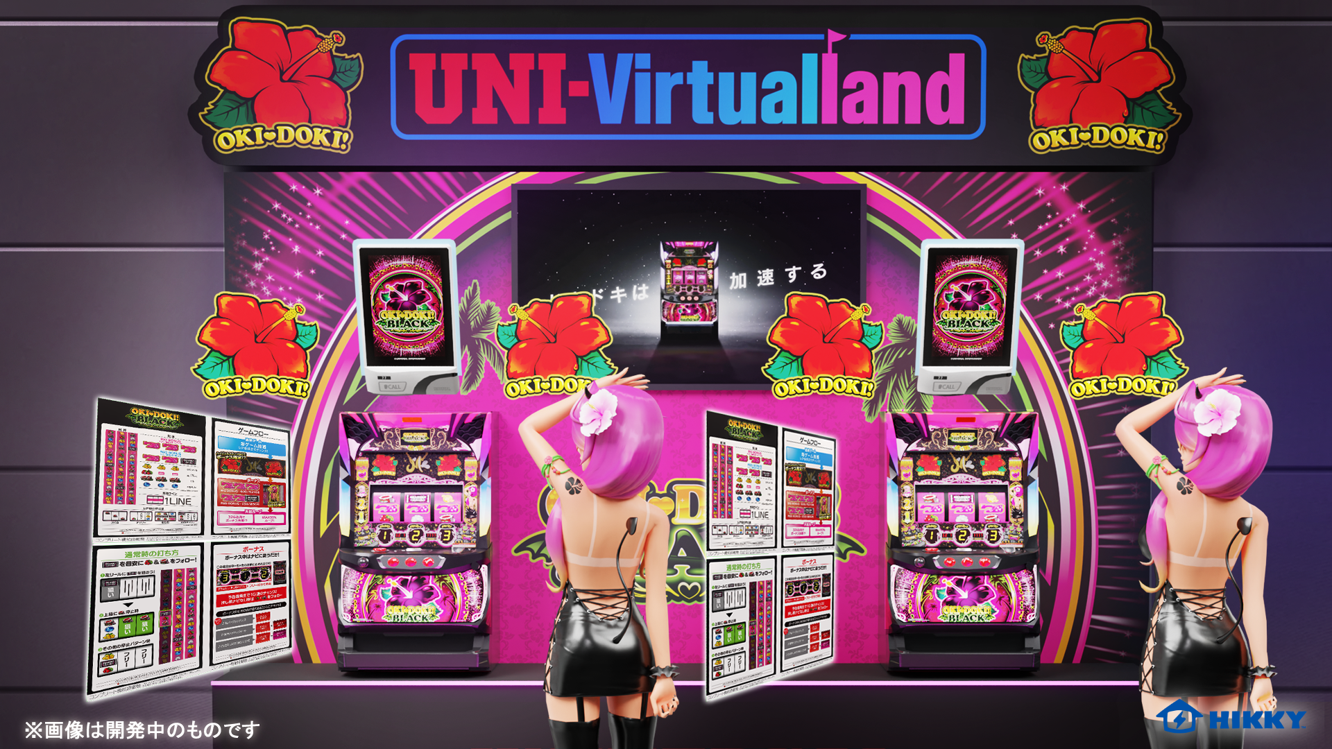 会場に出展するブースでは、今回のパラリアルドバイをVR(仮想現実)で体験できることに加え、当社スロット機種「沖ドキ!BLACK」を活用したMR(複合現実)体験コーナーもご用意しております。バーチャルとリアルが合したMRならではの様々な演出を、存分にお楽しみください。