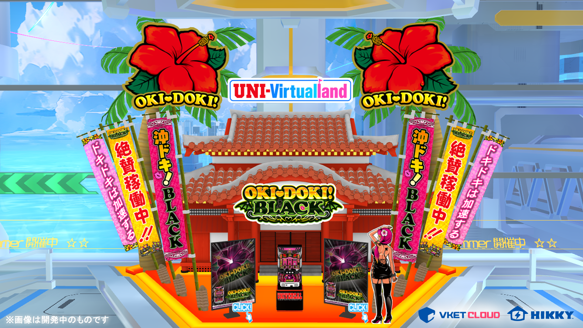 さらにVket期間中、スマートフォンなど様々なデバイスから手軽にアクセスできる「Vket Cloud(Webブラウザ会場)」のエントランスにも、「沖ドキ!BLACK」の筐体と、カナちゃんが登場します。ぜひ、こちらの会場にもご来場ください!