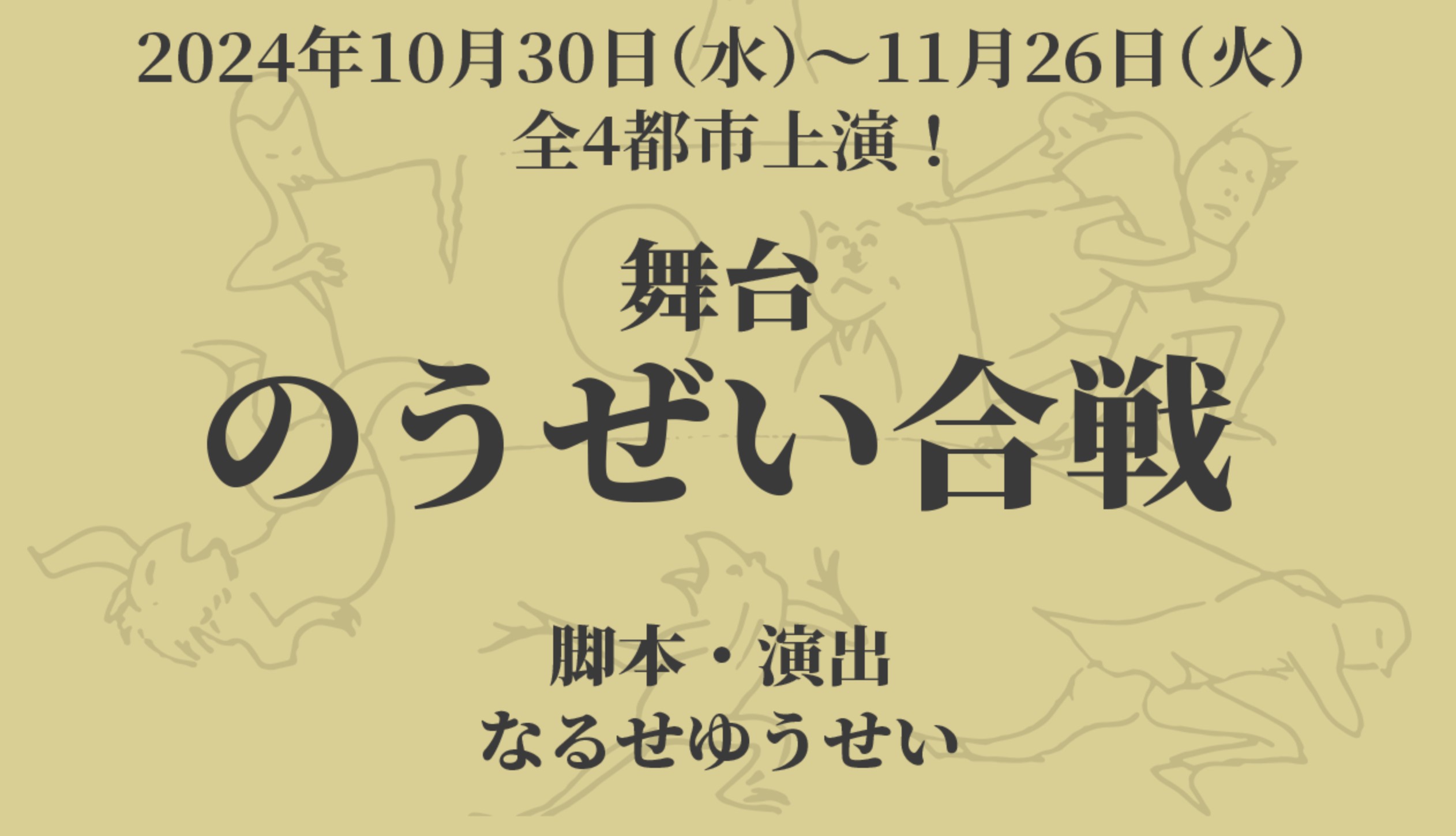 ミュージカル「ヘタリア」シリーズや、舞台「文豪とアルケミスト」シリーズなど人気マンガやアニメ原作の舞台化、そして昨今では【社会問題×エンタメ】をテーマにした映画「君たちはまだ長いトンネルの中」等の監督を務めるマルチプロデューサー・なるせゆうせいが手掛ける、【ふるさと納税】をテーマにした完全オリジナル新作舞台【のうぜい合戦】が2024年10月30日(水)~11月26日(火)までの全4都市で上演が決定!