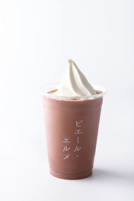 カカオの口当たりなめらかで濃厚な風味とスパイシーで奥深いコクを感じられるアイスココアに北海道産の生乳を使用したバニラのソフトクリームをのせて仕上げました。