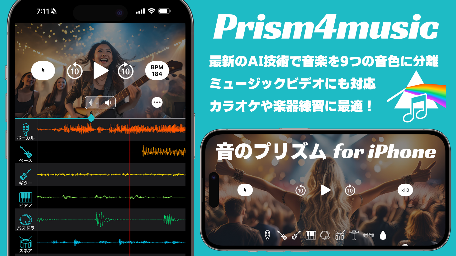 株式会社キットピーク(本社:横浜市、代表取締役社長:阿部 卓己)は、Apple iPhone向けに、 音楽やMVを、最新AIで、ボーカル、ベース、ピアノ、ギター、ドラム(スネア、バスドラ、シンバル、タム)と9音色に分離するアプリ 「Prism4music」(プリズム・フォー・ミュージック)を、7月17日より発売します。