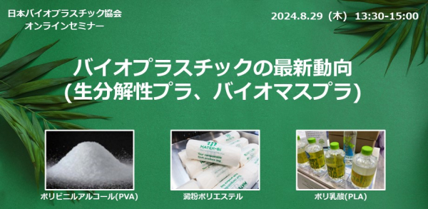 日本バイオプラスチック協会(JBPA)は2024年8月29日に以下のオンラインセミナーを開催します。