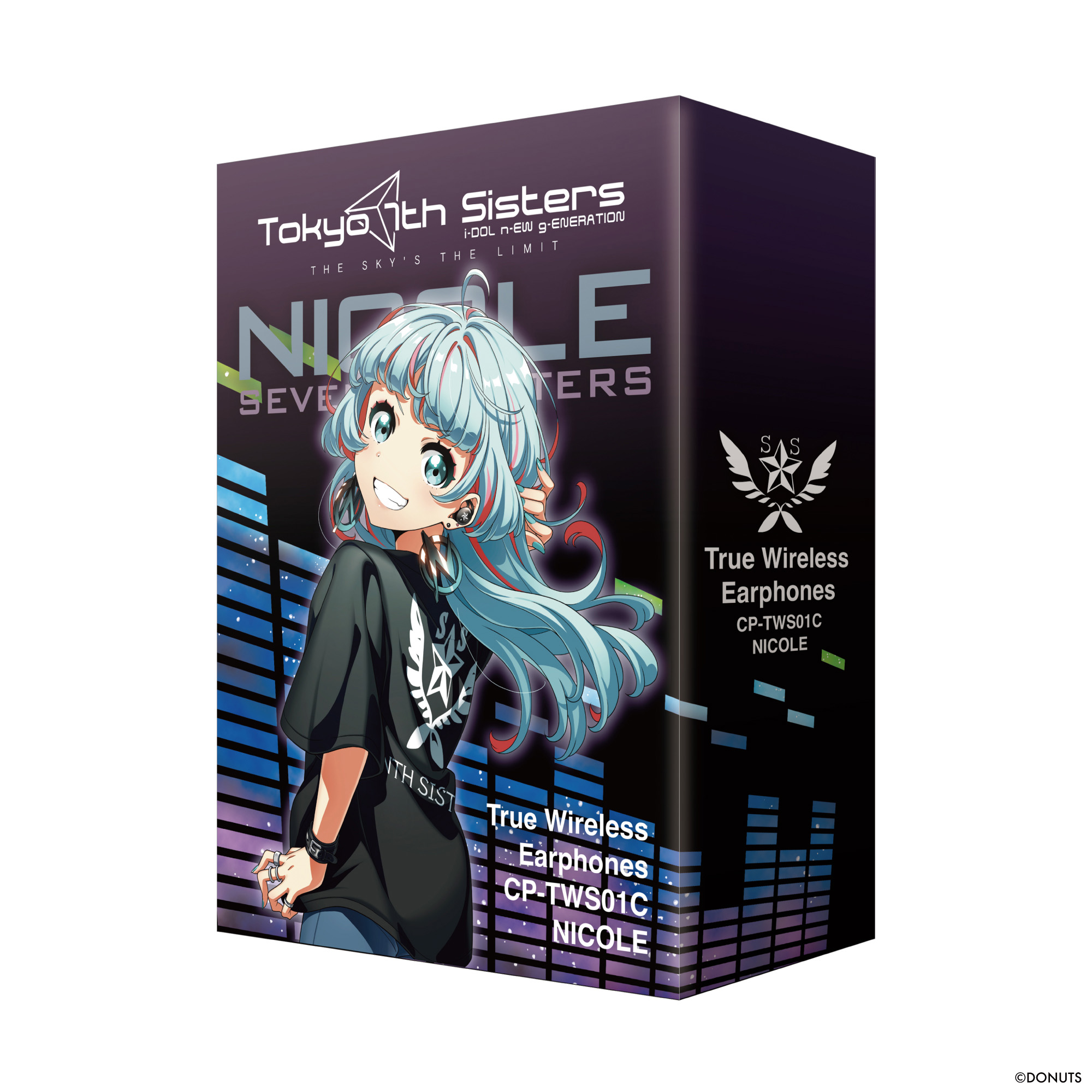 充電ケースの天面にはニコルのモチーフと「SEVENTH SISTERS」をデザイン、左右ハウジングは星をレイアウトし、作品の世界観を表現しています。さらにパッケージは「七咲ニコル」描き下ろしイラストを使用したオリジナルデザインになっています。