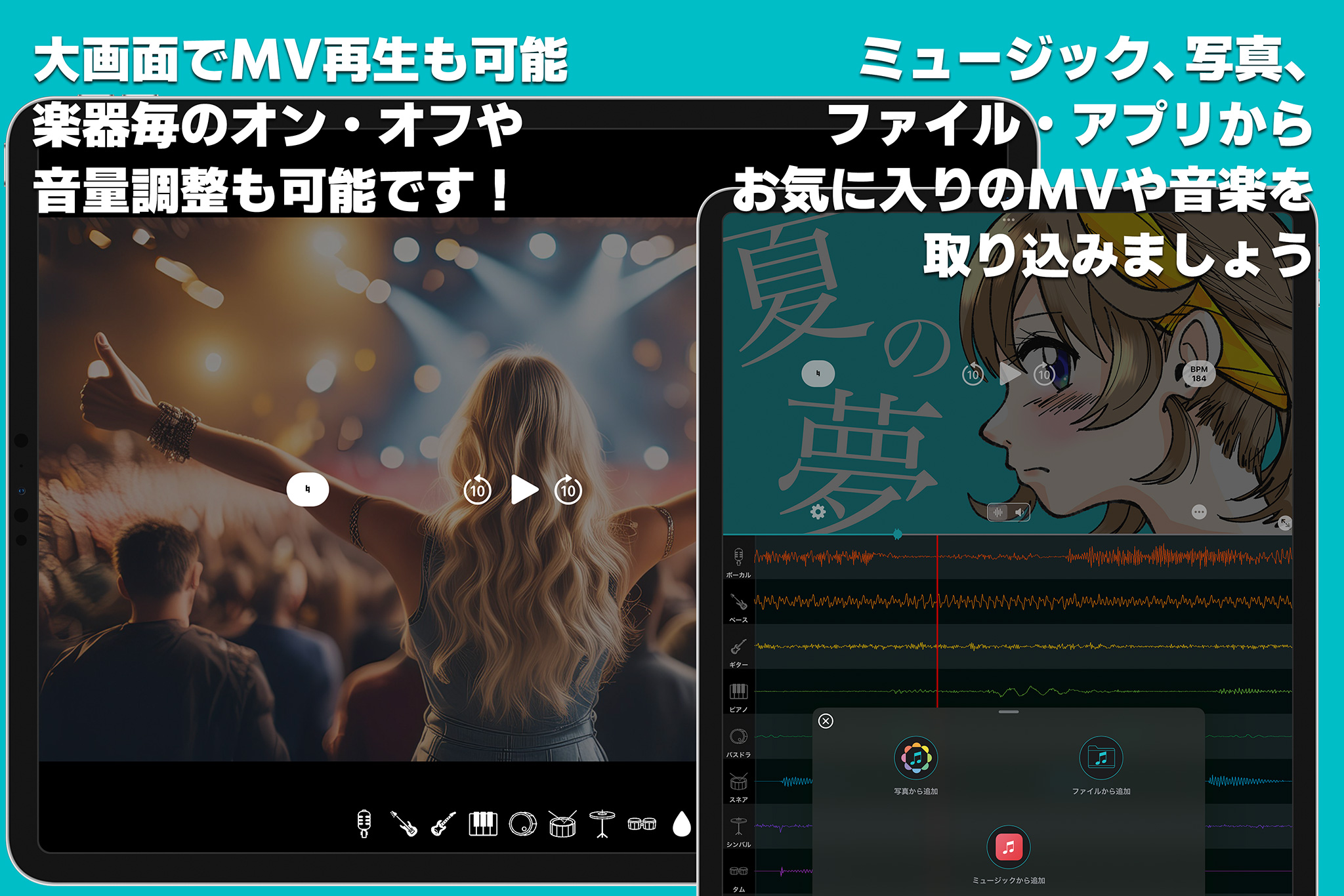 お気に入りのミュージックビデオを視聴しながら、カラオケに、楽器の練習にとご活用ください。