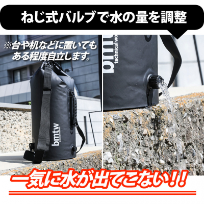 いざという時、ウォータータンクに。最大容量20リットル!ショルダーベルト付きなので、背負えて運びやすい。アウトドアにも最適。