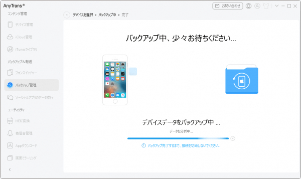 Step5.変更が完了したら、AnyTransを使って新しい保存先にバックアップを作成します。「バックアップ」オプションをクリックし、指示に従ってバックアップを開始します。