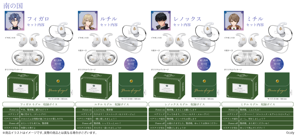 「CP-TWS01D」と株式会社colyが運営する今年11月にリリース5周年となるスマートフォン向けアプリゲーム『魔法使いの約束』から「西の国」「南の国」全8キャラクターとのコラボレーションモデルの受注販売を致します。
