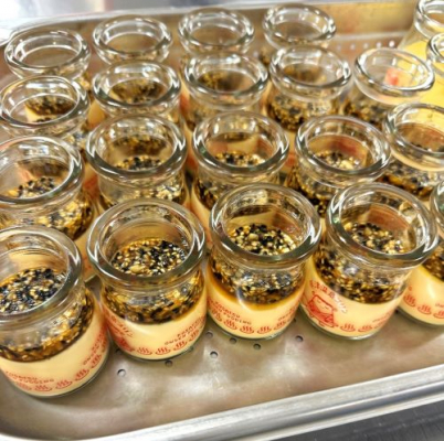 『正田醤油』様のたまり醤油を使った湯もみプリン(みたらしごま)