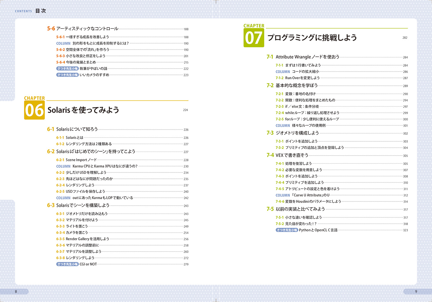 本書では、SideFXのHoudini先生である「さつき先生」が、CG初心者・Houdini初心者向けに、Houdiniの使い方と、その周辺における概念をわかりやすく丁寧に解説します。