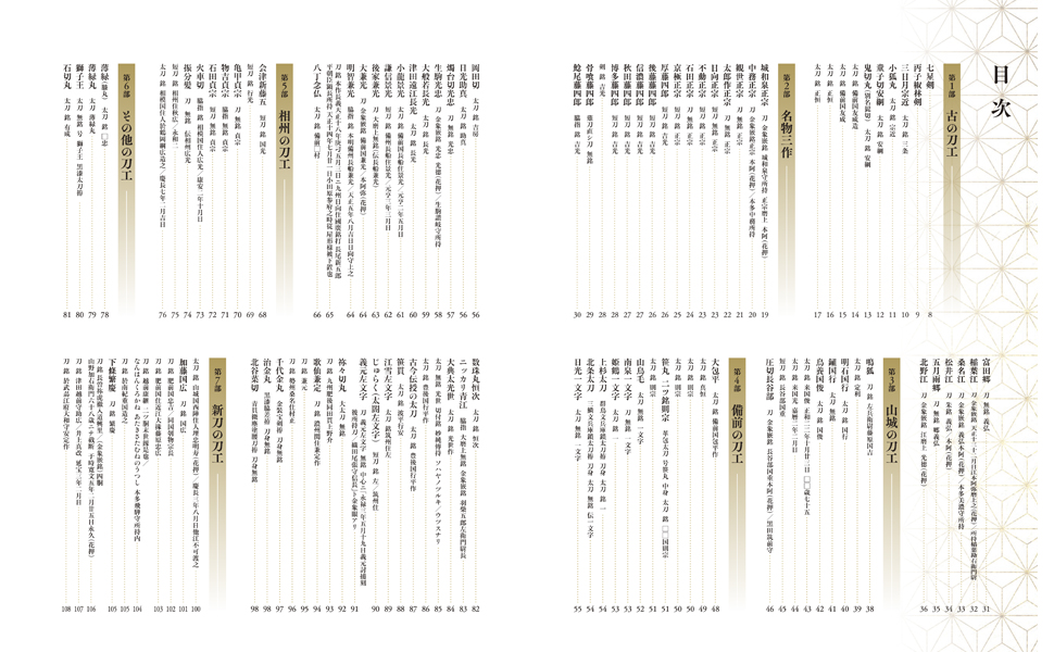 七星剣、丙子椒林剣から水心子正秀、大慶直胤、源清麿まで、古今の名刀を計117振掲載。