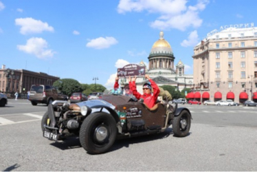 行きはフランス→ルクセンブルク→ドイツ→ポーランド→ ロシアの飛び地カニングラードからフェリーでサンクトベルク、モスクワの赤の広場へ、折り返し地点の赤の広場を超えてからはエストニア→ラトビア→リトアニア→ポーランドルートでチェコ、オーストリア→イタリア→フランス通って→モナコ 12カ国をレトロなクラシックカーで周るプロジェクトだ。