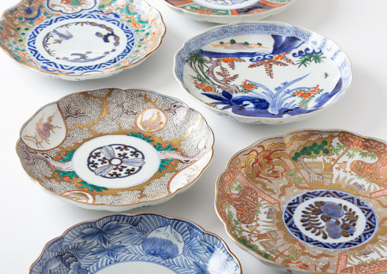 模様もさまざまで、花鳥風月、縁起柄、吉祥紋様、獅子や龍など架空の動物や春夏秋冬の情緒的なものまで、個性豊かな意匠や変形皿なども多くあります。手間を惜しまぬ丁寧な仕事のものや、皿をキャンバスに見立て、まるで絵画を描くようにつくり手が楽しんで描いたものなど、見て取れます。