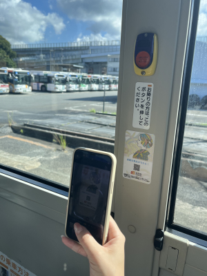 降車ボタン下のステッカーQRコードから、作品を見て感じたことをシェアするだけ。