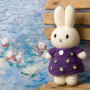 お洒落でアートなインテリアが揃っているMoMAデザインストアより、かぎ針編みコットン製ミッフィーのぬいぐるみをご用意しました。モネの「青い睡蓮」をモチーフに作られたドレスを着たミッフィーです。