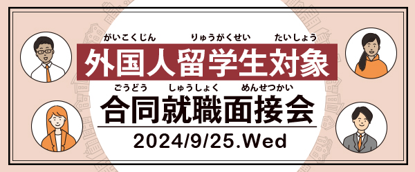 9月25日(水)外国人留学生を対象とした合同就職面接会をkokoka京都市国際交流会館 イベントホールにて開催します。