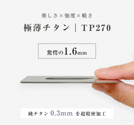 製造は金物産業の街として世界的に有名な新潟県「燕三条」地域で行われます。硬く加工が難しいとされるチタンを、超精密レーザーマシンでコンマ数ミリの狂いもなく切り出し、カットされた面は人の手や大切な名刺を傷つけることのないよう、創業半世紀を超える老舗工場の職人の手で1つ1つ滑らかな面へと処理されます。