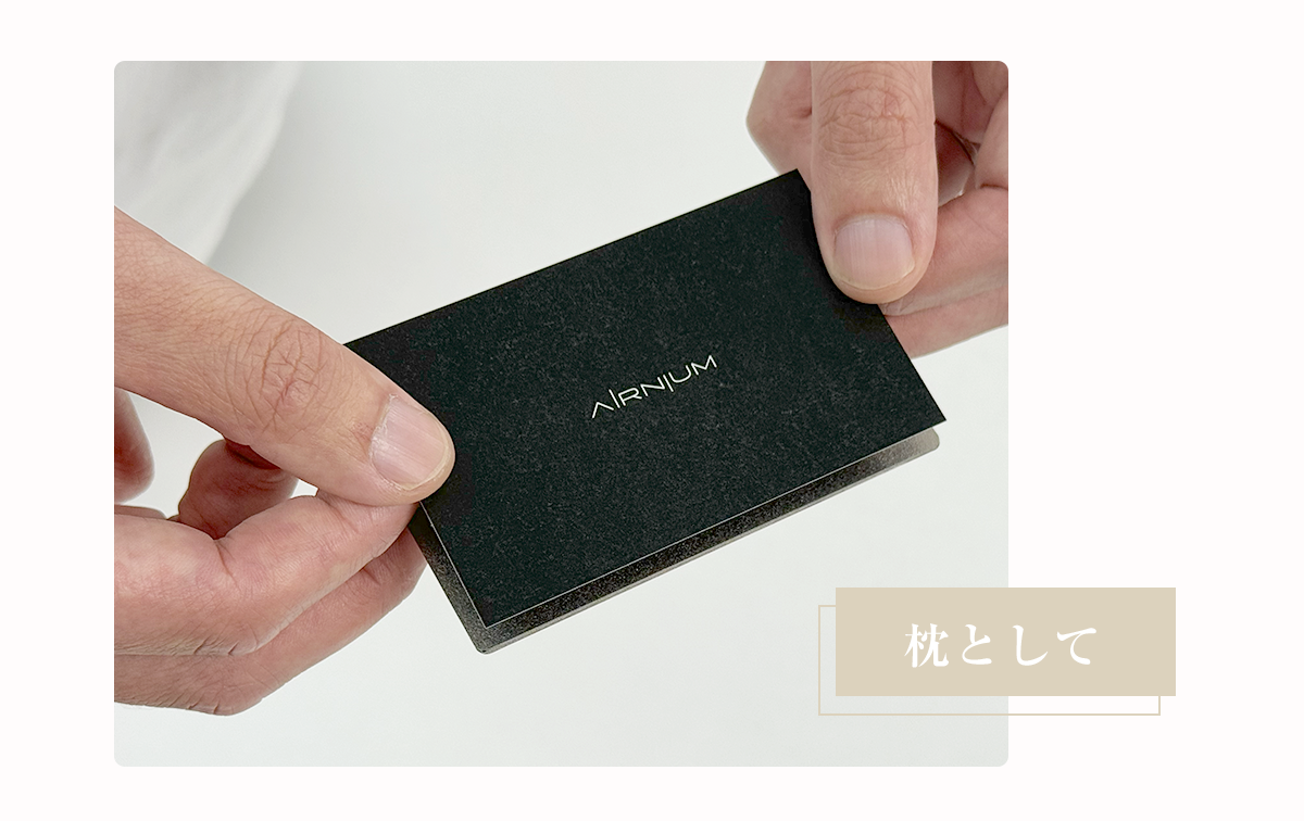 AIRNIUMの寸法は名刺とほぼ同サイズで、長財布や二つ折り、小型の財布などさまざまな財布への収納はもちろん、財布だけでなくスマホケースやパスケース、カバンのポケットなど自分のライフスタイルに合わせたところへ忍ばせることも出来ます。