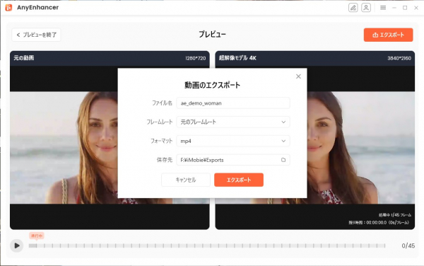 高画質化の効果をすぐに確認でき、元の動画と高画質化後の比較が可能です。視覚的な違いを一目で実感できます。