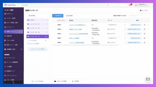 フォルダ管理・募集期間・最終更新日・ユーザー情報などが見やすくなり作業効率が向上。