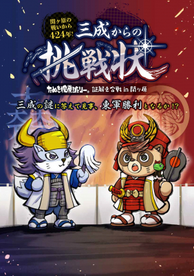慶長5年(1600年)天下分け目の戦いとなった関ケ原合戦から424年。現代の平穏な関ケ原で展開する「謎解き合戦in関ケ原 三成からの挑戦状」は、古戦場一帯に隠された石田三成からの挑戦状(謎)に徳川陣営の軍師となって挑み、天下分け目の合戦さながらに、この地に再び平和を取り戻す謎解きラリーです。