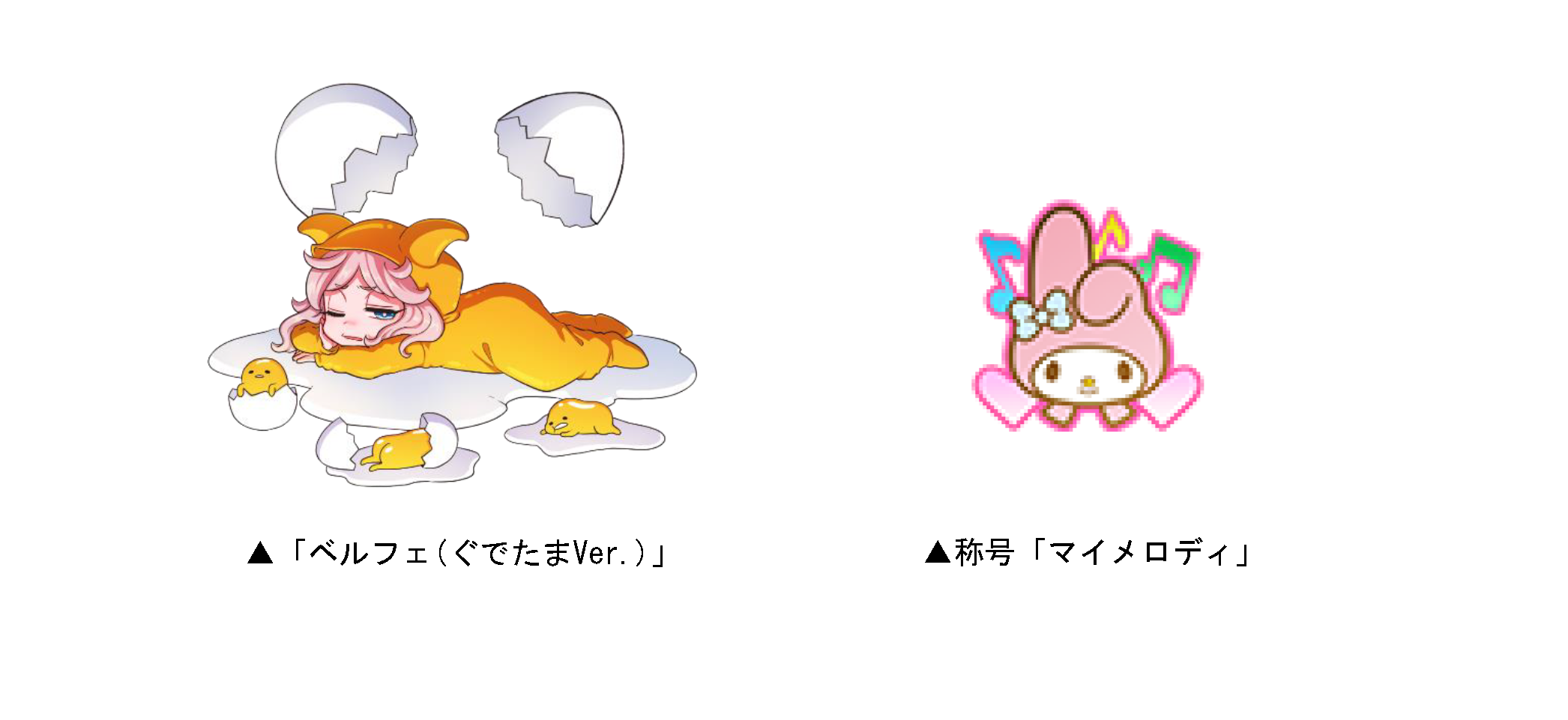 前回登場した「ニャル(シナモロールVer.)」「クレア(ポムポムプリンVer.)」「ハデス(クロミVer.)」「リュミ(ポチャッコVer.)」「ペルセポネ(マイメロディVer.)」「レヴィ(ハンギョドンVer.)」「パーシィ(バッドばつ丸Ver.)」などが再び登場!