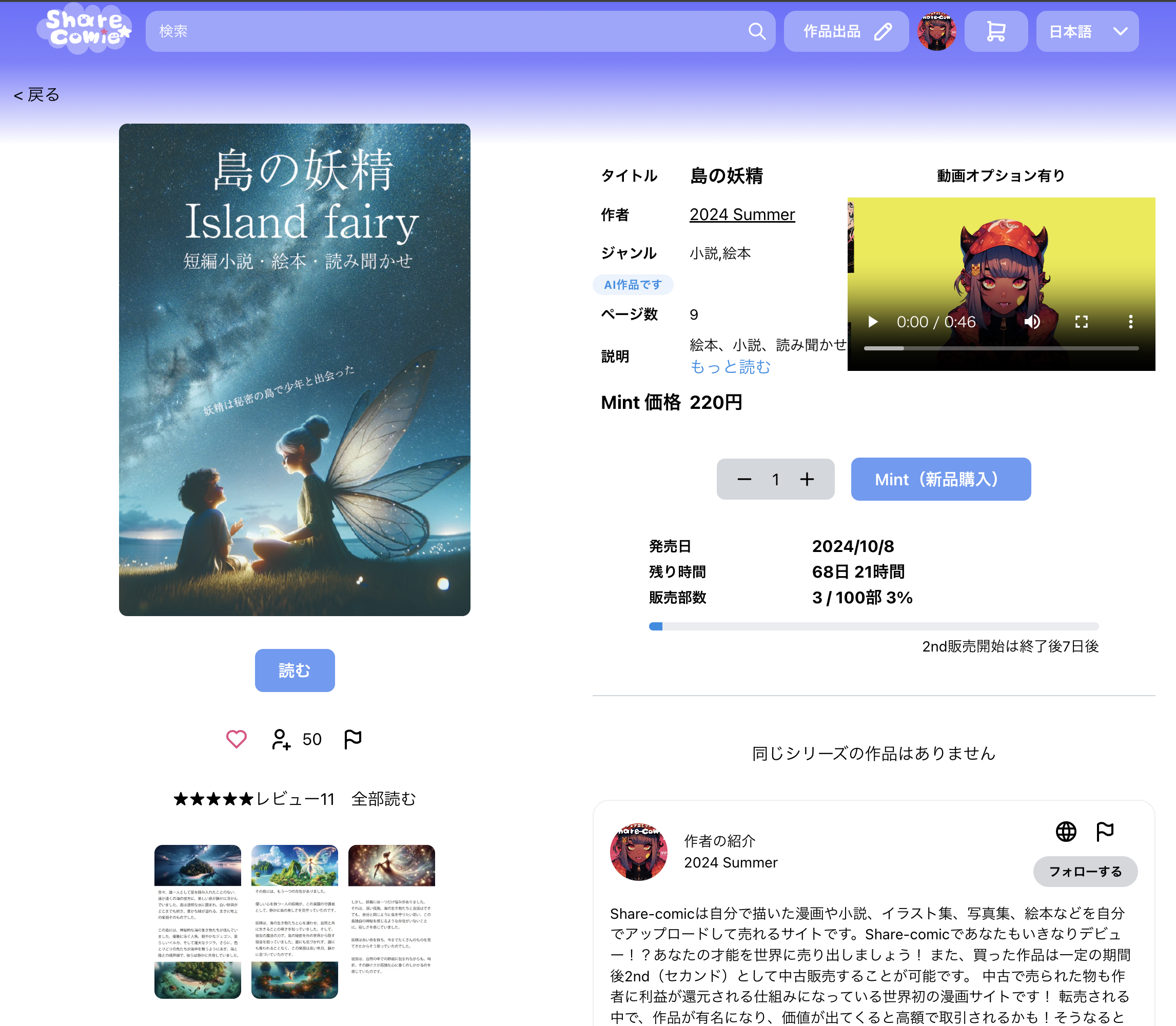 電子書籍市場の成長に伴い、セルフ出版は注目を集めていますが、従来のプラットフォームでは作者が作品の所有権や収益を持続的に確保するのが難しいのが現状です。「Share-Comic(シェアコミック)」はこの課題に応えるべく、作者が自分で販売戦略を立てながら、再販による収益も得られる仕組みを構築しました。