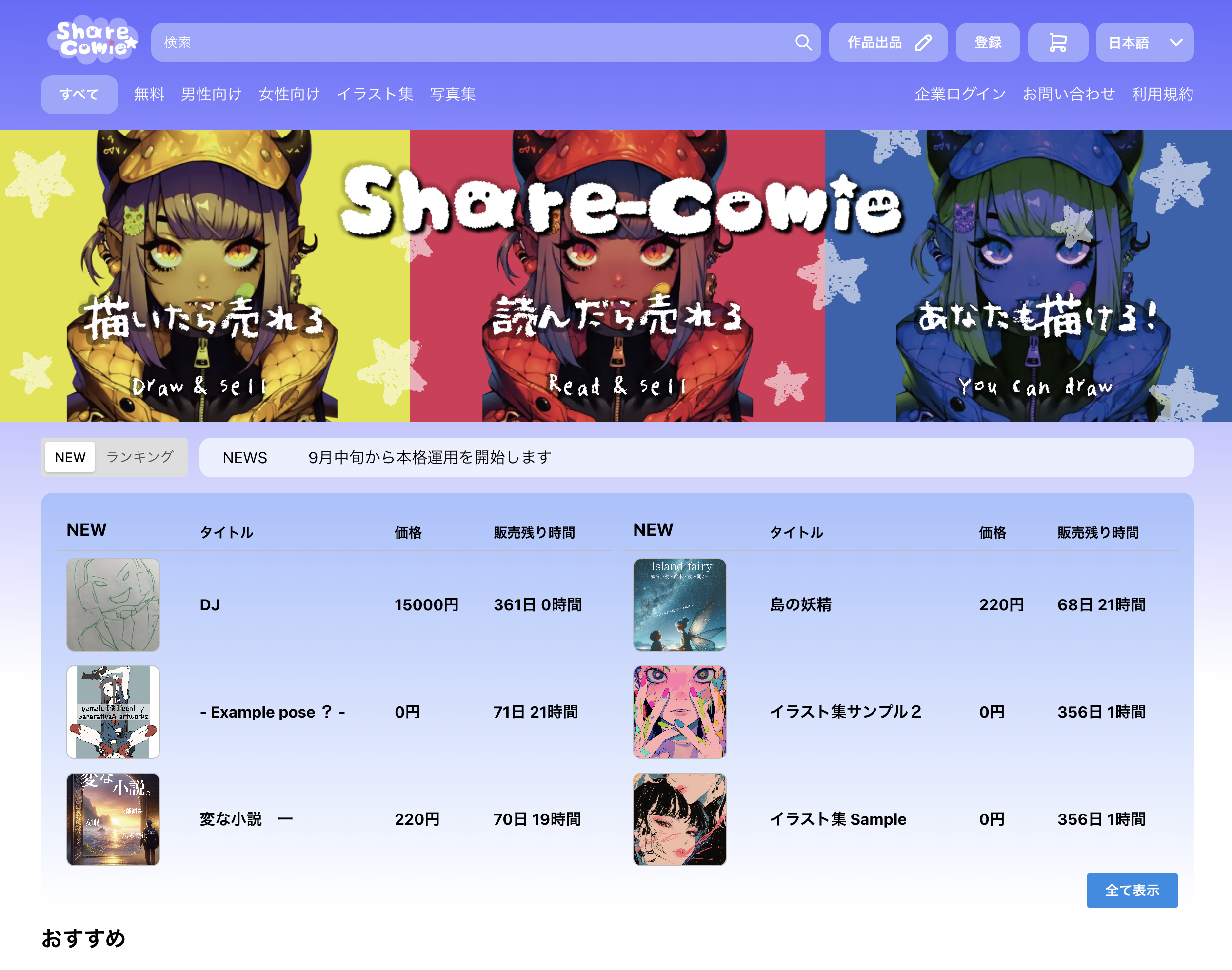 クリエイターが自身の権利と収益を守りながら、電子書籍を簡単に販売・購入できる全く新しいプラットフォーム「Share-Comic(シェアコミック)」の正式リリースを発表します。