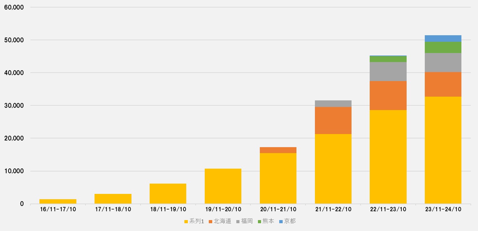 ■累積登録会員数の推移(2024年10月31日現在) ※五拠点合計