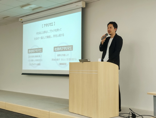千葉県・四街道市で冷凍・チルド帯の食品を中心とした運送事業を展開する株式会社日東物流(代表取締役:菅原拓也)は、東京都社会保険労務士会が、11月15日(金)に開催した研修会に登壇、当社代表取締役の菅原拓也が、当社の進める「アタリマエ経営」について、お話いたしました。