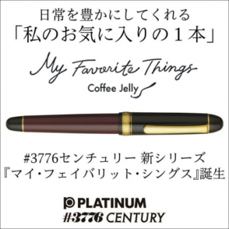 インク鮮度を保ち続けるスリップシール機構を搭載した万年筆として 2011 年の発売以来ご愛顧いただいている「#3776 センチュリー」。特別限定モデルシリーズとして 『マイ・フェイバリット・シングス』が誕生します。身近にある「私のお気に入り」でボディを彩ることをコンセプトに、定番色には無い限定モデルならではの配色で展開を図るシリーズで、第 1 作目として『コーヒーゼリー』を発売いたします。