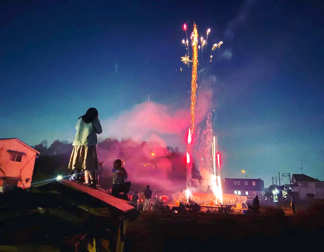 これは国立市谷保の自然の中に残る貴重な田んぼでの冬の花火大会。国産の打ち上げ花火を親子で楽しみます。100発近くの花火が冬の田んぼに打ち上がるのは壮観です。またお子様は各種の手持ち花火を体験できます。同時に暖かい汁物もご用意。自然豊かな夜の田んぼでの華やか&暖かなひと時を楽しんで頂けます。