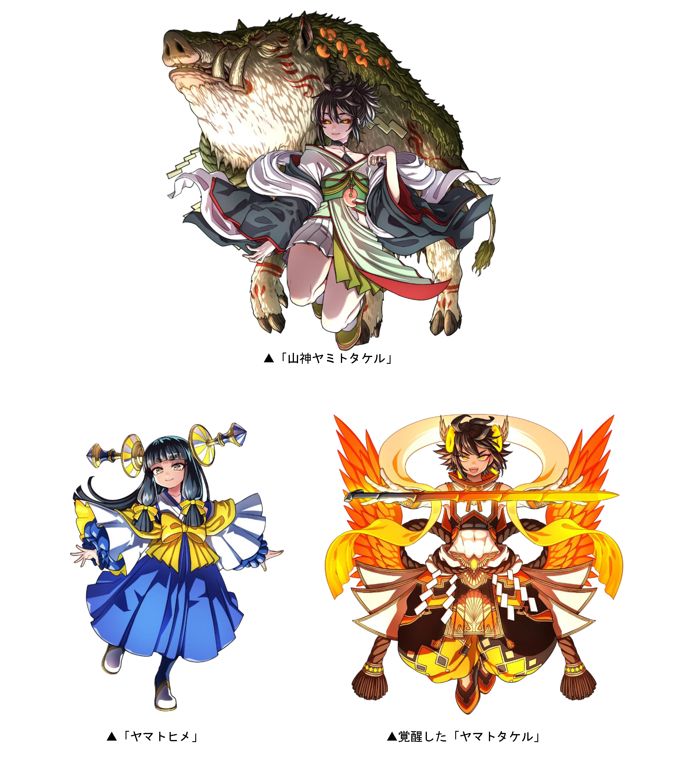 本ダンジョンには、「山神ヤミトタケル」「ヤマトヒメ」、覚醒した「ヤマトタケル」が出現し、クリアした回数に応じて竜石を手に入れることができます。