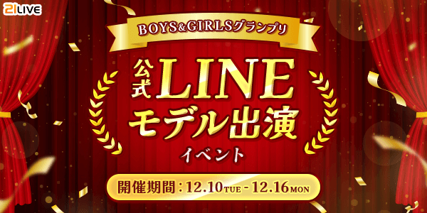 総合ランキング1~5位に入賞すると21LIVE公式LINEのモデル出演権を獲得!