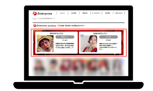 グランプリに輝いた男女ライバー2名は、21LIVE提携芸能プロダクション「F.Enterprise(エフエンタープライズ)」(https://fenterprise.jp/)のホームページにスペシャル枠で掲載します。