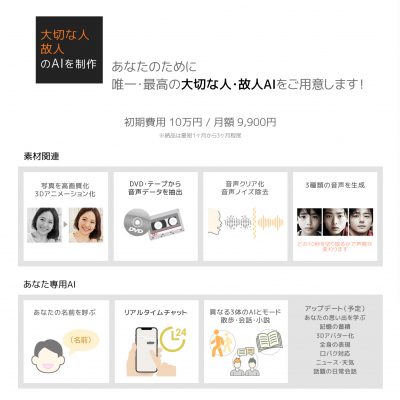 日本語音声生成AI技術を使い、大切な人・故人のAIを再現。