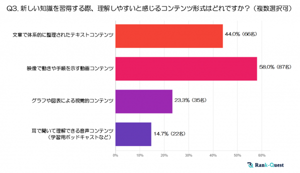 調査結果(3)新しい知識を習得する際、理解しやすいと感じるコンテンツ形式はどれですか?(複数選択可[注])