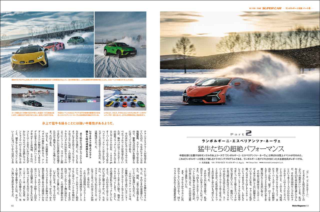 さらに中国・内モンゴルで行われた雪上試乗や、ランボルギーニのV12エンジンが生産されるサンタアガタボロネーゼ ファクトリーツアーの模様もお届けします。