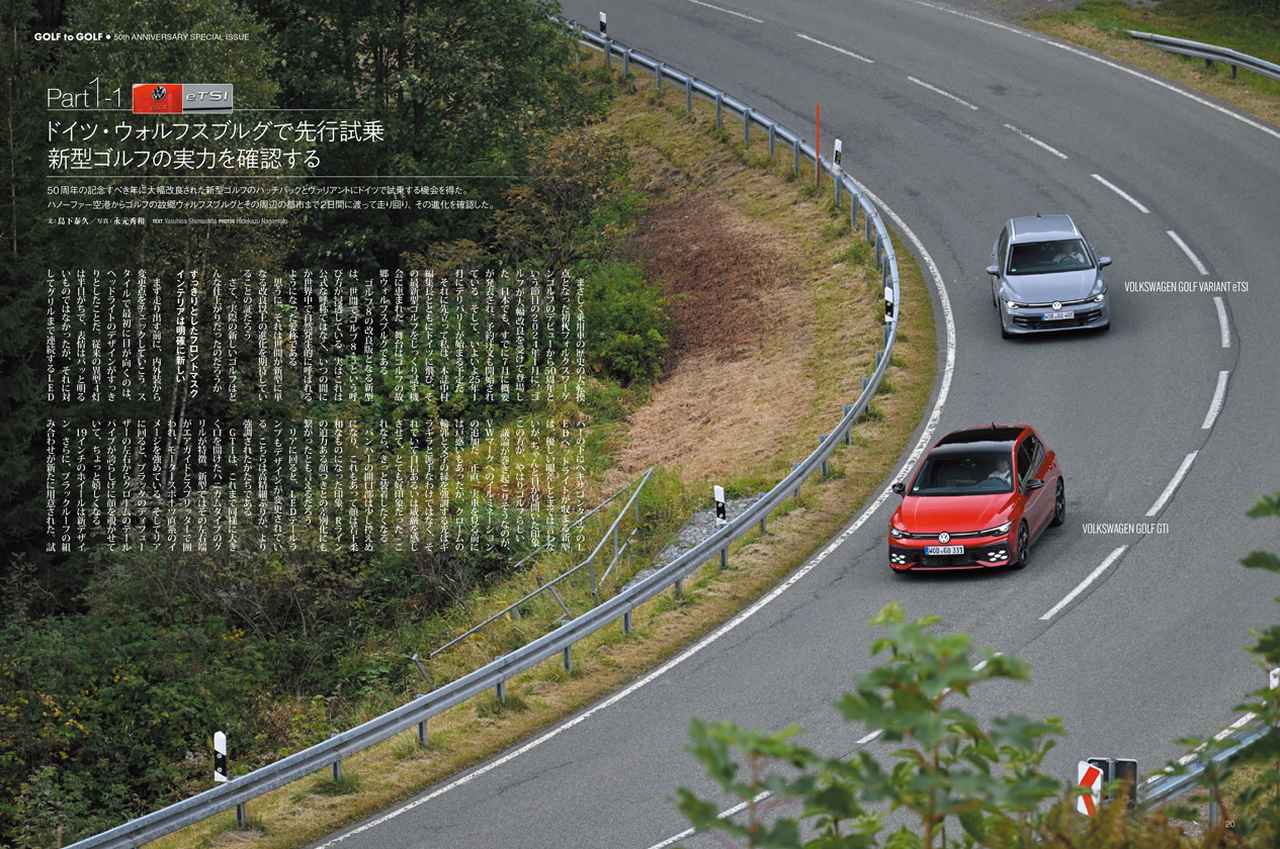 第一特集「フォルクスワーゲン ゴルフ 50周年記念企画 GOLF to GOLF」のパート1では、ドイツ本国でゴルフ GTIとeTSIスタイル、ゴルフ ヴァリアント eTSIの3車種をたっぷりと試乗。さらに開発に携わったプロダクトマネージャーへのインタビューも交えてゴルフ8.5の真の姿に迫ります。