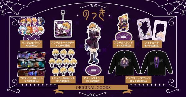 『のっき』さん書きおろしのイラストも使用したアクリルスタンドや缶バッジなど、計10種のオリジナルグッズは、2025年2月6日(木)までの期間限定で販売しております。