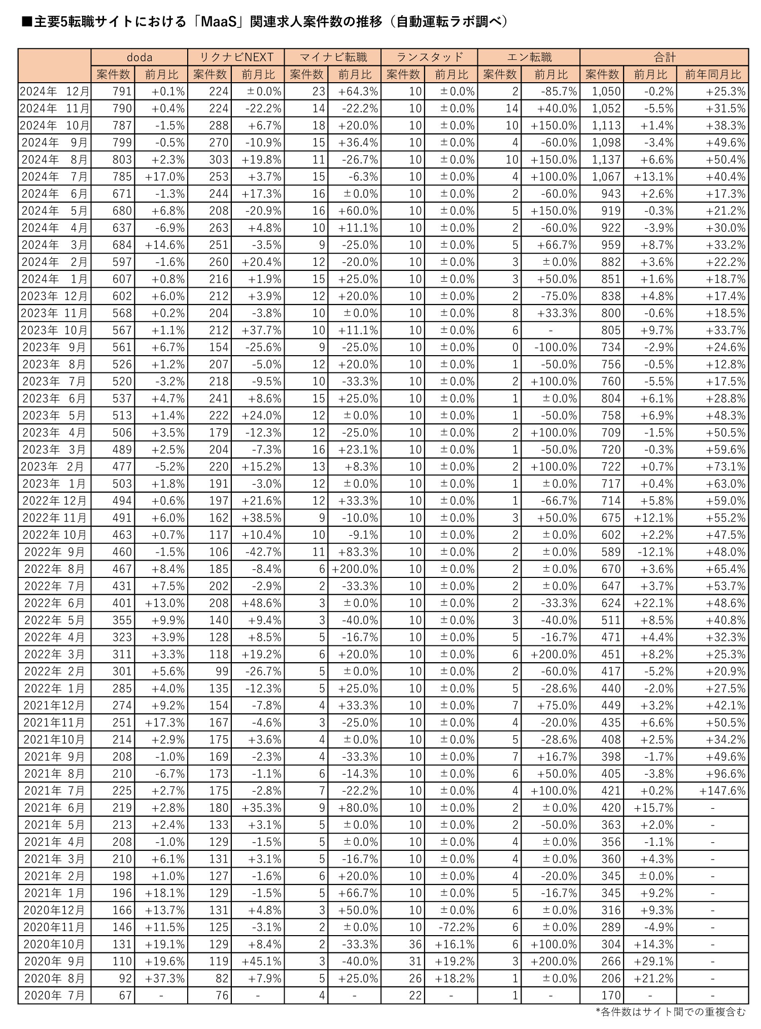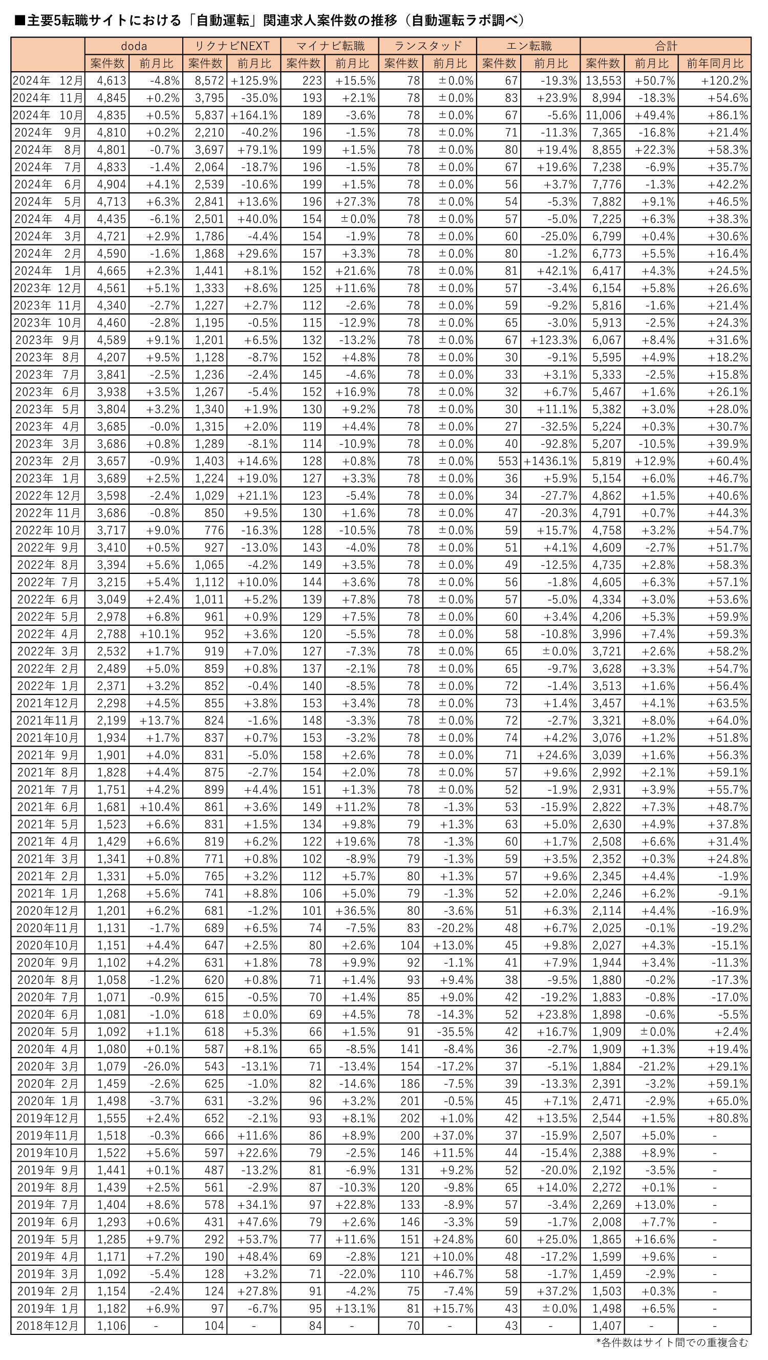 ●『自動運転ラボ』による定点求人案件数調査について