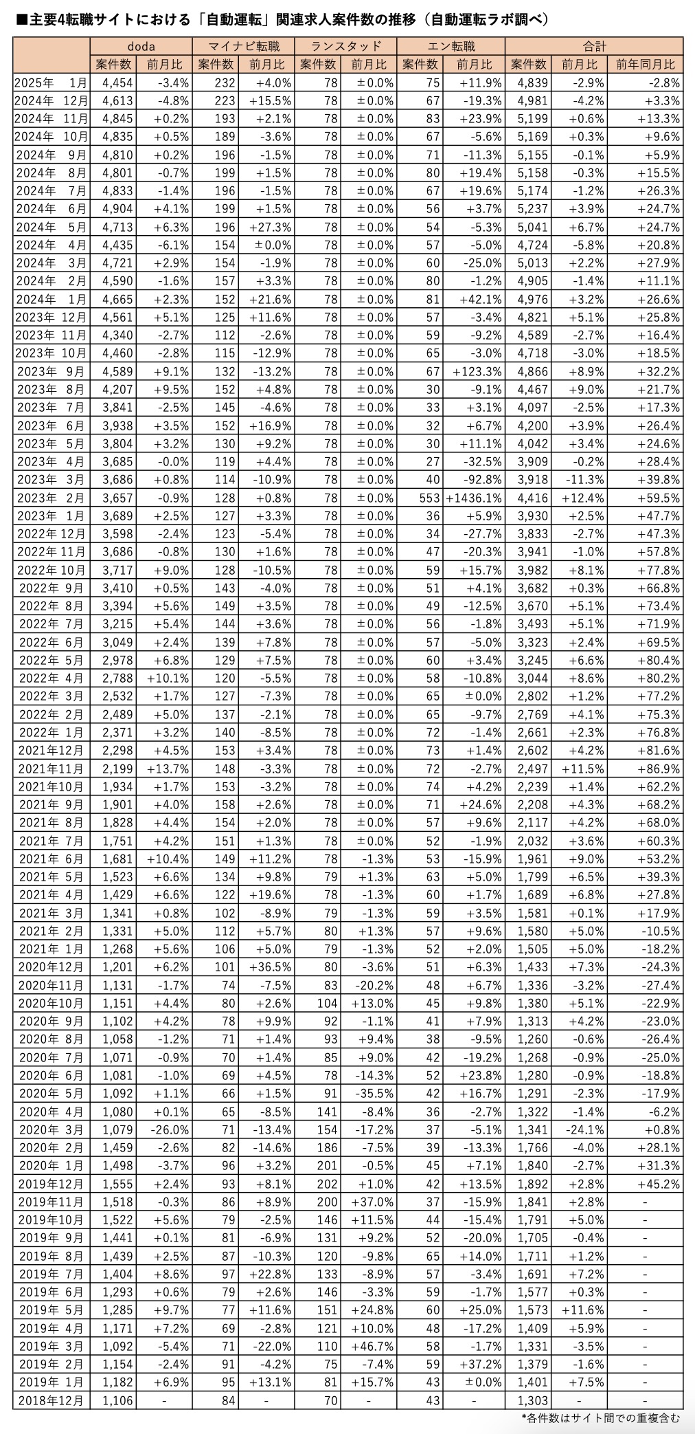 株式会社ストロボ(以下、当社/東京都港区 代表取締役 下山哲平)が運営する日本唯一の自動運転専門ニュースメディア『自動運転ラボ』(https://jidounten-lab.com)は、日本国内における自動運転・MaaS関連求人案件数の最新調査(2025年1月末時点)をまとめましたので、結果を発表いたします。