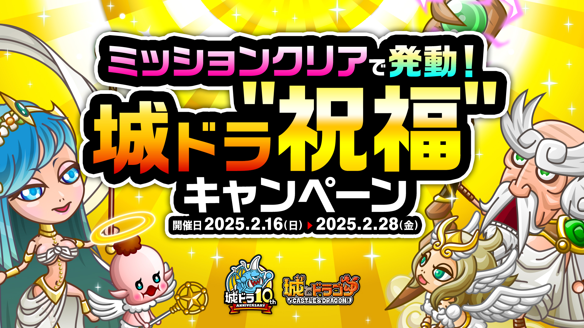 株式会社アソビズム(本社:東京都千代田区、代表取締役:大手智之)は、App Store・Google Playにて好評配信中の『城とドラゴン』で、「ありがとう10周年!城ドラ超感謝祭(後半)~大型アプデ実施~」が2025年2月16日(日)より開催中であることをお知らせいたします。
