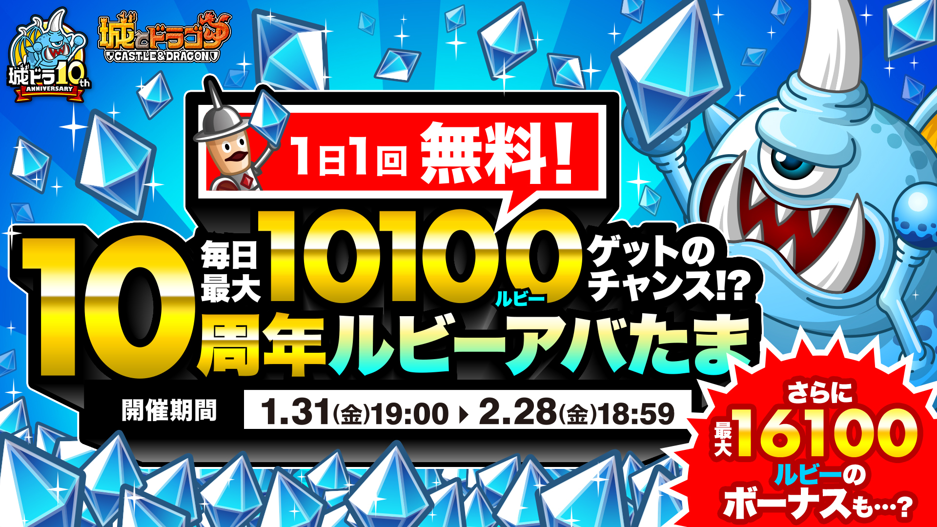 毎日最大10,100ルビーのチャンス?!「10周年ルビーアバたま」