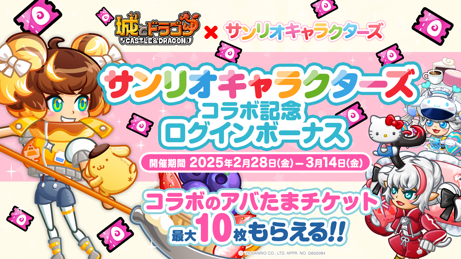 株式会社アソビズム(本社:東京都千代田区、代表取締役:大手智之)は、App Store・Google Playにて好評配信中の『城とドラゴン』で、『サンリオキャラクターズ』との復刻コラボイベントを2025年2月28日(金)より開催いたします。
