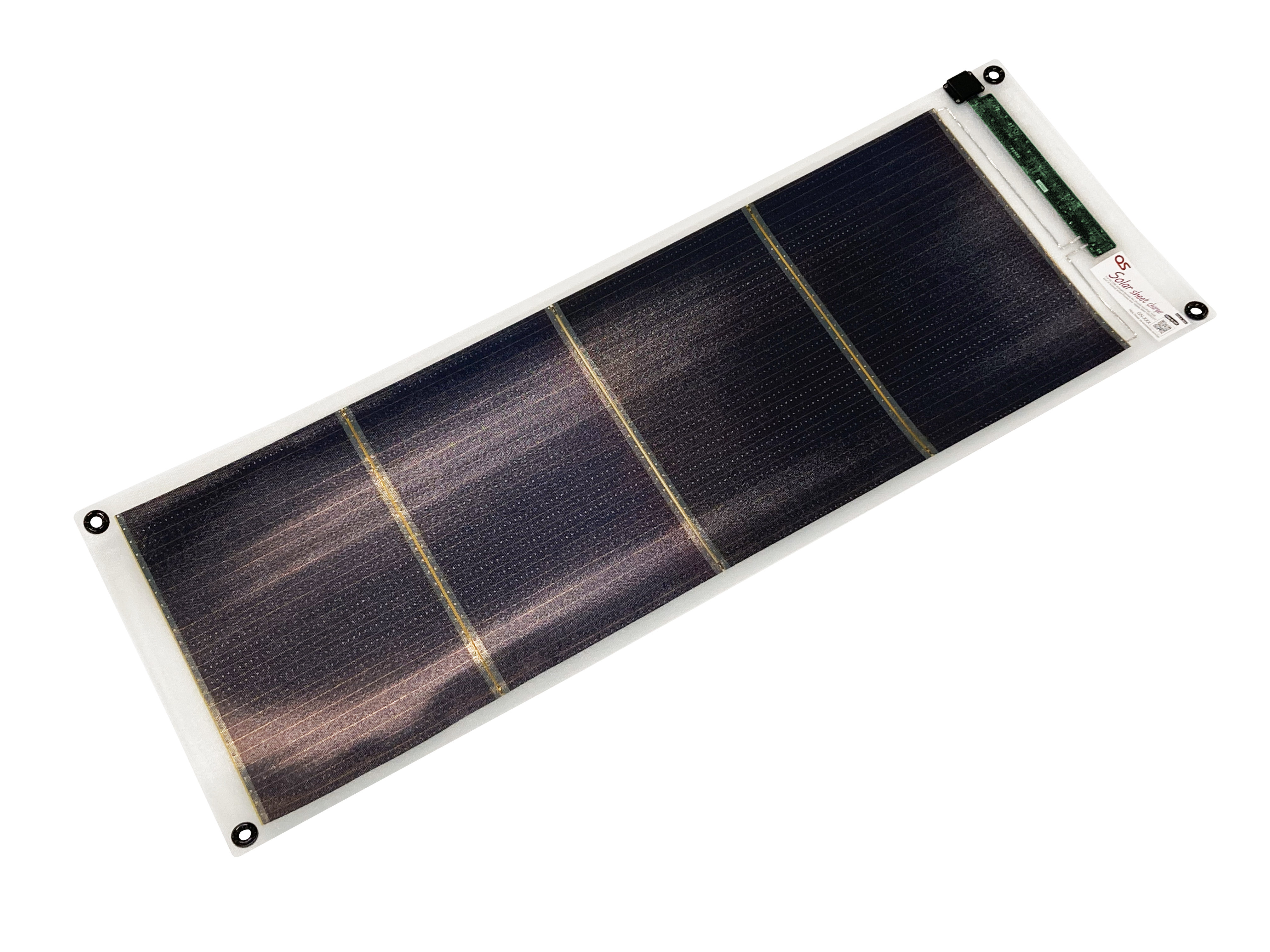 また、巻き癖がつきにくく、シートを広げて簡単に使用できる設計を採用。緊急災害時はもちろん、キャンプなどのアウトドアでもストレスなくスムーズに展開して利用することができます。均一でフラットな平面性は太陽光を均一に受け止め発電し、安定した電圧電流の確保を実現します。